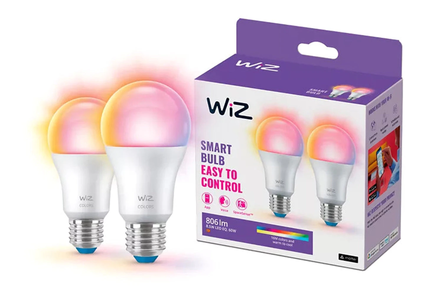 The WiZ LED A60 full-colour bulb brings smart lighting for your daily living. Retrofit into any lamp shade to create the ambience of your choice with 16 million colours, as well as warm to cool white light. You can set a schedule to turn lights on and off according to daily or weekly routines, control with your smartphone or your voice and have remote access to your lights even when you’re away. WiZ lights connect to your existing Wi-Fi, no additional hardware is needed.